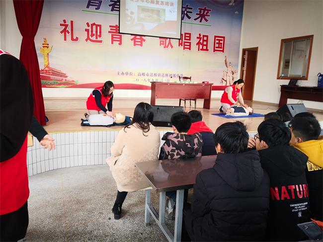为增强学生们的健康意识和自救互救能力,3月14日下午,高邮市杏林志愿者协会的志愿者走进送桥初中,为全校师生进行心肺复苏急救知识培训。