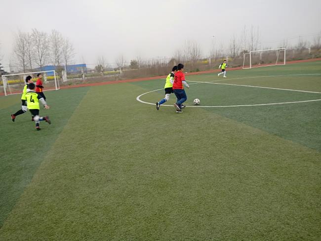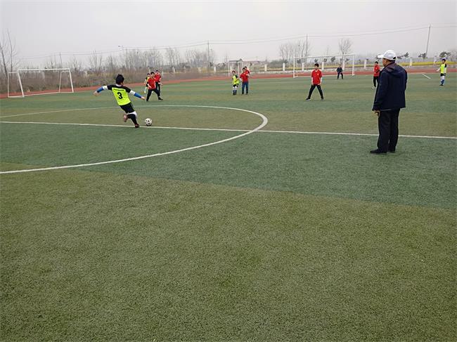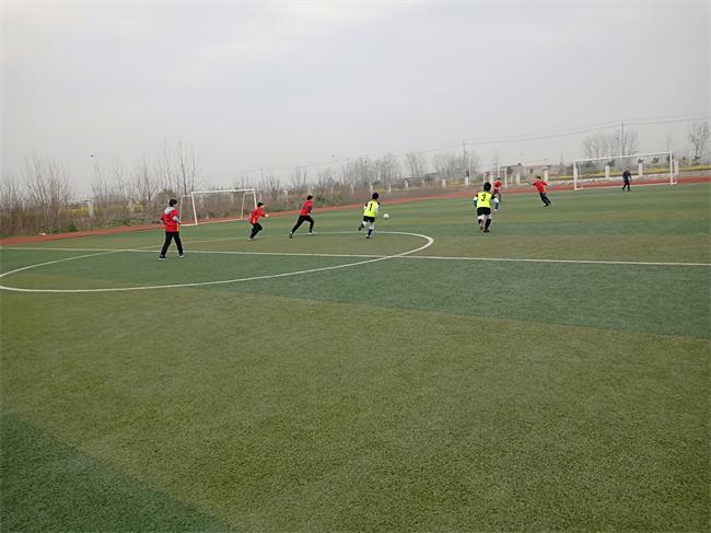 激情飞扬现活力,绿茵赛场展风采。随着裁判员的一声哨响,两队开始了激烈的拼抢。运球、传球、过人、断球、反击、进攻、射门。球场上运动员们技术熟练,巧妙配合,凌厉进攻。比赛进行了半个小时,中途休息。双方队员虽都大汗淋漓,但没有一个喊累,在短短的十几分钟的休息时间,双方队长还在进行赛前战术安排和人员调整。休息过后,双方又进行后半场的激烈酣战。运动员们拼劲十足,就像在草原上的一匹匹脱缰的“黑马”,不断奔跑,为自己的梦想而努力。通过队员们的奋力拼搏,最终双方以1:1的成绩结束了这次比赛。