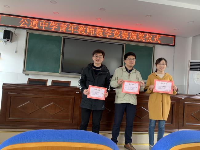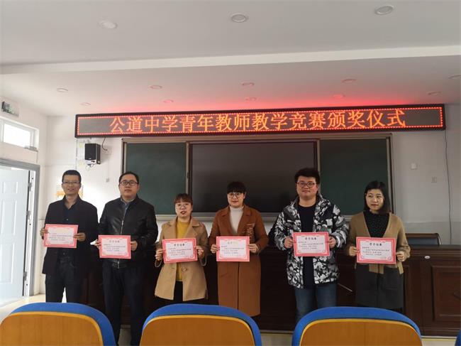 此次学校青年教师课堂教学比赛活动持续一周时间, 经过学校竞赛评委的认真评定,最终确定出获得公道中学教学竞赛一、二等奖的人员名单。4月12日,在学校教科处组织下,举行了教学竞赛颁奖仪式。通过活动探索了基于学生核心素养发展的课堂教学改革的新策略,积累一批“慧学”课堂教学案例,有利于整体推进学校课堂教学改革,全面提高学校教育教学质量。