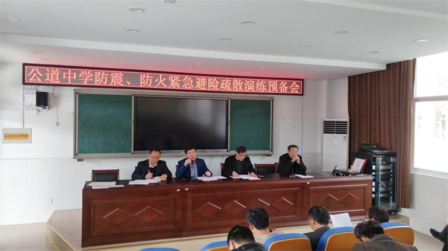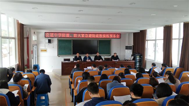 4月17日上午9:25,公道中学在毓贤楼多功能教室举行防震、防火紧急避险疏散演练预备会,学校全体教职工近150人参加会议,会议由校长助理盛传云主持!