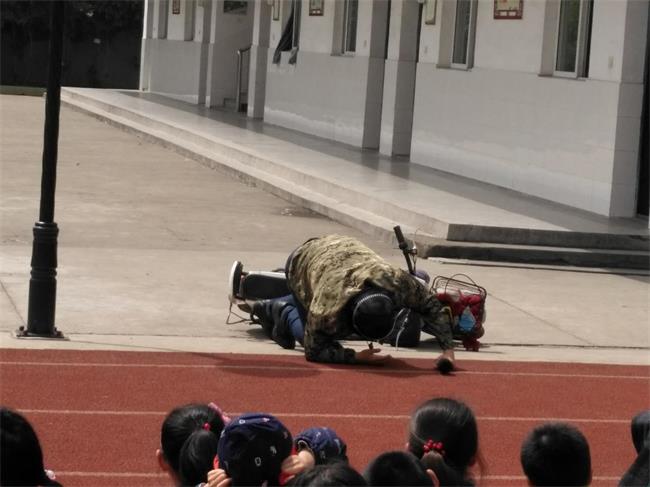 消防逃生演练之后,消防员向师生们介绍了电动车安全行驶知识——戴头盔的重要性、不在马路中间行驶、逆向行驶的危害、横穿马路的危险性、禁止闯红灯,以及乘坐家庭汽车的注意事项。