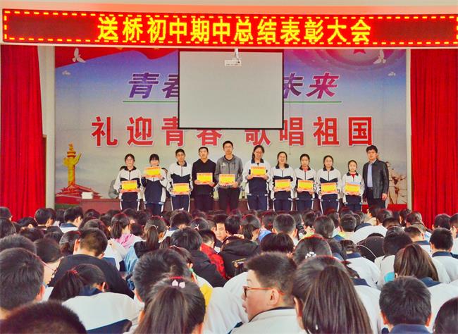 孟夏之日,天地始交,万物并秀。为了表彰先进、树立典型,激励广大学生努力学习,奋发向上,立志成才。5月7日,送桥初中全体师生齐聚学校会堂,举行了期中表彰总结大会。