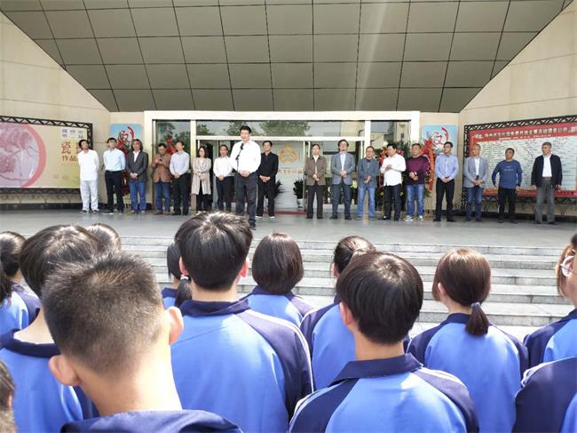 在揭幕仪式上,公道中学沈文涛校长应邀致辞,他说,公道中学是第一届全国文明校园、江苏省艺术教育特色学校、江苏省高中美术教育课程基地,学校艺术教育竖起了扬州市高中教育的一面旗帜!多年来,学校形成了“文艺并举,双轮驱动”发展策略,“全面发展,培养特长”的办学模式日益成熟,促进学生和谐全面发展,每一年为高校输送一批艺术类人才。近年来,学校加强与扬州大学美院等高校的联系,在其辐射示范及专家指导下,学校艺术教育办学特色更为鲜明,办学成果日益增加,学校走出了一条扬州普通高中的发展成功之路。