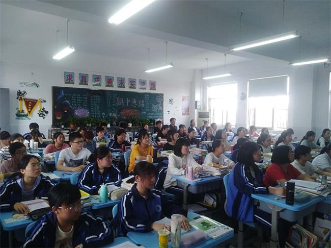下午14:00市视导组专家在教学楼四楼会议室反馈了高二年级的视导情况,沈文涛校长、李兆兵副校长等领导及高二年级全体备课组长听取了反馈意见。
