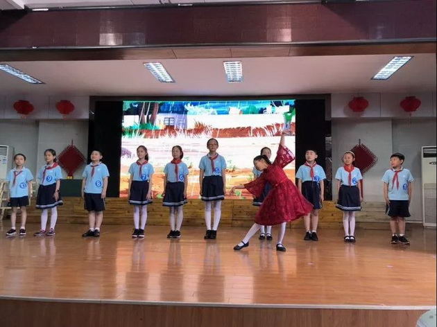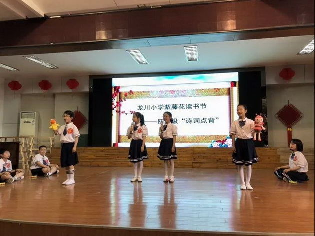 本次比赛分为古诗词集体诵读展示、诗词点背、评委提问三个环节。参加集体诵读展示的是每班在班级诵读比赛中选取出的