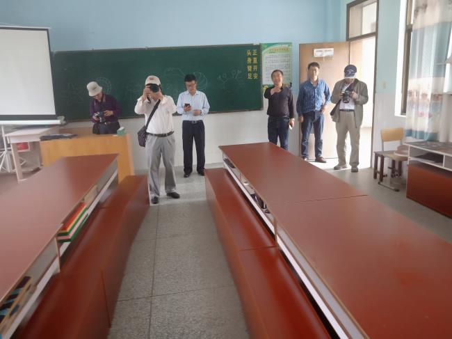 今天柳堡镇中心小学迎来了一批特殊的客人,他们每人都挎着相机,在校园里边参观边不时的拍下些什么时候。咦,他们在干什么呢?走近一瞧,哦,原来是我们教育界的一些老前辈们。