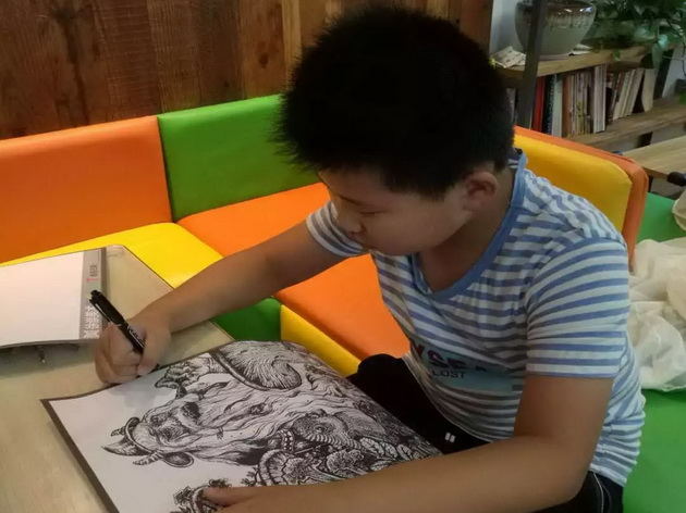这一本绘画专辑的创作过程历时近一年,小作者凭借《山海经》一书中精妙绝伦的文字展开了天马行空的想象,利用线描手法绘就出了《