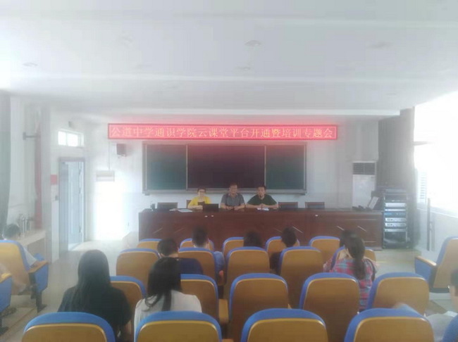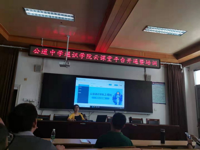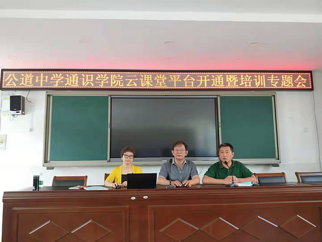 8月24日上午,北京某教育科技有限公司的专家来到公道中学,与学校相关负责人就公道中学通识学院云课堂平台举行开通仪式暨培训活动,标志着学校云课堂平台项目即将正式投入使用。