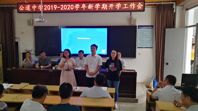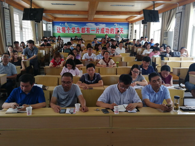 2019年8月26日上午,公道中学近150名教职员工在学海楼一楼阶梯教室召开2019-2020学年第一学期新学期工作会。