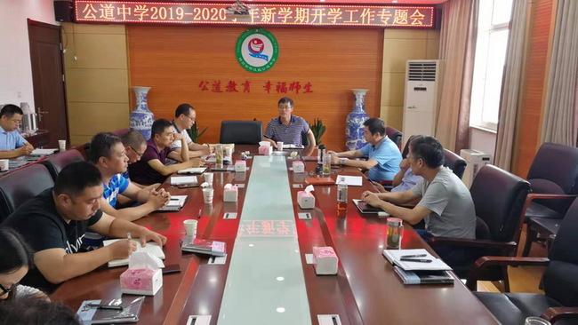 8.25上午,在学校宜思楼四楼会议室,公道中学全体校务会议成员、全体行政人员及学校部分同志合计近30人召开了有关开学工作的专题会议,部署了新学期的主要工作。会议由学校党总支书记沈文涛校长主持!