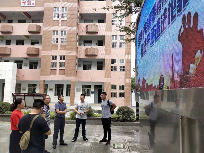 在九龙苑内的验收现场,有关公司代表分别解答了区人防办及公道中学领导、老师的相关问题,还当场进行了播放的操作演示,尽管是白天时间,LED彩屏播放效果良好,在学校的教学楼五楼走廊上也可清晰观看,为公道中学教育宣传又增加了一新的重要阵地。