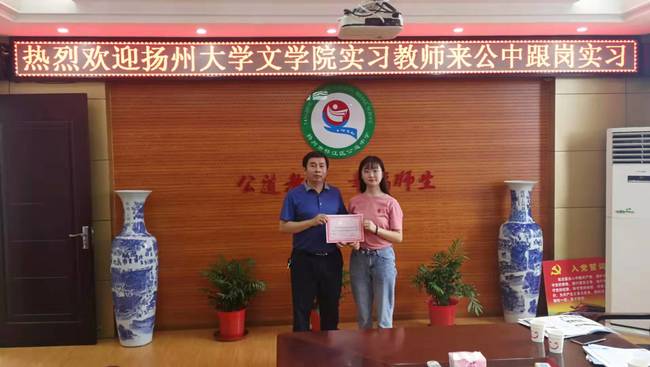 公道中学盛传云副校长对此次教师实习作了具体布置和精心安排,并祝愿各位扬大文学院的实习教师在公道中学跟岗实习圆满成功。