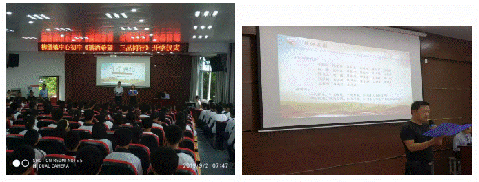 9月2日上午,柳堡镇全体师生齐聚学校大礼堂,举行“播撒希望,三品同行”开学仪式。全体师生欢聚一堂,满怀希望,放飞梦想,活动在嘹亮的国歌声中拉开序幕。 张校在致辞中对学校所取得的成绩予以肯定,并鼓励大家再接再厉;对全校老师的工作给予高度的赞扬,鼓励教职工勇于奉献,不忘初心,用爱心、耐心浇灌每一朵花朵;对全校学子提出了殷殷期望,希望学生们努力拼搏,实现心中的梦想,最后对全体师生提出了新的要求。典礼还对先进教师、优秀学生进行了颁奖,诗歌朗诵《致青春》,更是表达了心中的愿望以及他们努力学习,奋发图强的坚定决心,学生们深受鼓舞。是啊,青春就是奋斗,青春就是拼搏。 开学典礼在全体学生的铮铮誓言中落下帷幕,本次活动总结过去,展望未来,并且鼓舞在座的每一位师生,努力、拼搏,才能成就学生的梦想,我校全体师生定会为践行“三品教育”而不懈奋斗,争取续写新的篇章!(杨静)