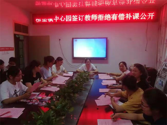为切实贯彻县局教育精神,落实教育部《新时代幼儿园教师职业行为十项准则》的要求,9月10日下午,借教师节这个特殊的日子,柳堡镇中心幼儿园举行了《江苏省中小学教师拒绝有偿补课公开承诺书》的签订活动。全体教师在承诺书上签下了自己的名字,承诺自觉做到以下几点: