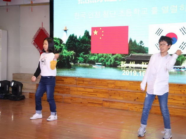 随后,中韩青少年开始了精彩的文化艺术交流。龙川小学的师生为客人们表演了合唱、舞蹈、相声、情景剧等节目,韩国学生也表演了说唱、器乐合奏、合唱等。节目精彩异常,赢得了场内观众的阵阵掌声。