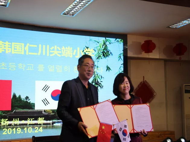 深秋十月,龙川大地叠翠流金,分外妖娆。10月24日的龙川小学校园,更是一派热闹的气象,韩国仁川尖端小学友好交流团一行30多人来到江都区龙川小学,开展为期半天的中韩青少年文化友好交流活动。