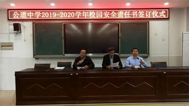 一直以来,公道中学始终坚持把安全工作摆在首位,通过举行责任书签订仪式,进一步强化了全体教职员工的安全管理、安全防范意识,使全校师生牢固树立“安全责任重于泰山”的观念,始终绷紧安全稳定这根弦,为学校教育教学秩序的稳定打下坚实基础。