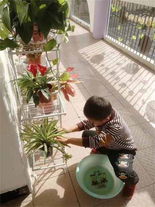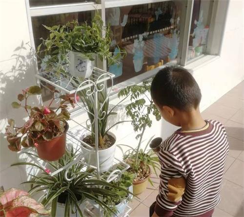 孩子好高兴呀,小花和自己一样,喝饱了水,更有精神,茁壮成长呢!