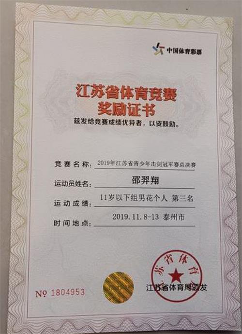 在刚刚结束的江苏省青少年击剑冠军赛总决赛中,龙川小学的邵羿翔同学力胜群雄,获男花个人第三名的好成绩。