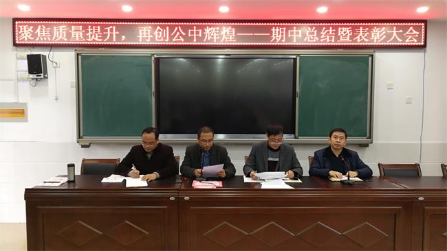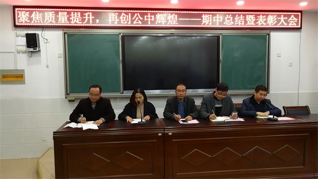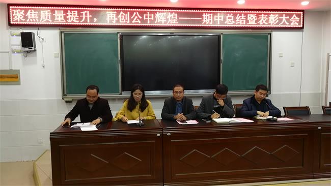 11月25日下午4:00-5:30,公道中学全体教职工齐聚在毓贤楼多功能教室,组织召开以“聚焦质量提升,再创公中辉煌”为主题的期中考试总结暨表彰大会。会议由李兆兵副校长主持。