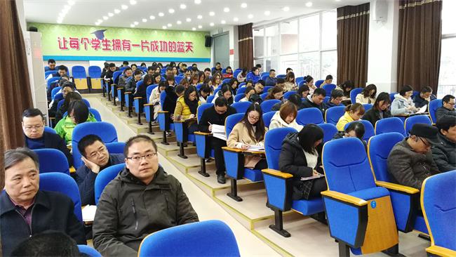 沈文涛校长作“聚焦质量提升,再创公中辉煌”为主题的发言。他首先深情回顾了近三十年来学校艰辛、曲折的发展过程,当年底子薄、起点低、成绩滞后——本科人数2个,5个,11个。我们有志气的公中人硬是一步一个脚印的干出了一番成绩——2003年本科103个,2008年本科320个,2013年高考本科率近70%,并首次荣获扬州市三星级高中高考特殊贡献奖(全市唯一),激发了全体教师的信心,让在场的大公中同志们感到震撼。他还结合教育系统主题教育的要求,强调全体教师应牢固树立立德树人使命,以“四个自信、四个意识和两个维护”为导向,通过“四重四亮”等创新活动进一步增强教师“守初心、担使命、找差距、抓落实”意识。
