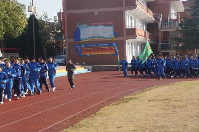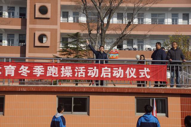 在仪式中,首先由学校德育处杨正海主任向全体师生详实讲解了跑操活动流程及考核评比等实施方案,还特别提出了学生跑操及班主任陪跑安全等注意事项。紧接着,由学校吴爱华校长助理围绕“每天锻炼一小时,幸福生活一辈子”的主题,向全校师生发出了积极参加跑操活动的倡议。最后,跑操活动在学校李兆兵副校长的一声枪响中迅速拉开了帷幕。操场上的同学们伴随着激扬的音乐,立即以整齐的步伐、昂扬的斗志、嘹亮的班级口号投入了跑操活动中。特别可贵的是,我们不少同学不顾天气寒冷,还充分利用跑操的间隙进行操前小读。