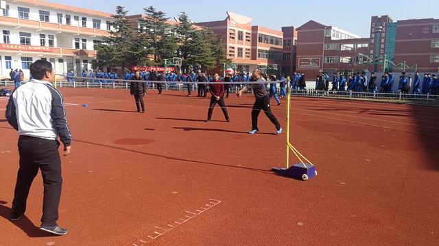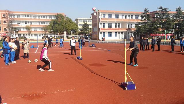 颁奖仪式后,唐德伟先生还参加了我校排球队的训练课,并亲自上场给予了专业性的指导,同时饶有兴趣的和沈文涛校长组队进行了一次友谊赛。