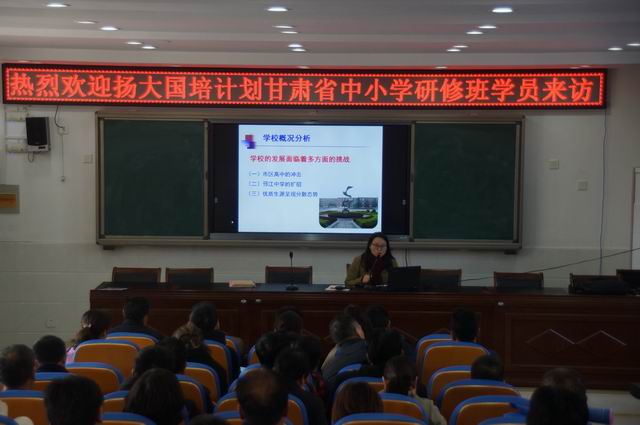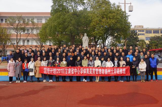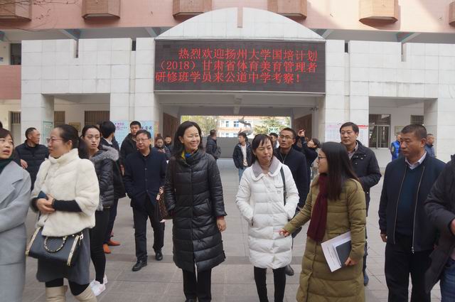 12月19日下午,在扬州大学体育学院王协强副教授带领下,扬州大学国培计划(2018)甘肃省中小学体育美育管理者研修班学员一行80多人来到公道中学考察访问,公道中学盛传云副校长、吴爱华校长助理等接待了研修班学员一行。