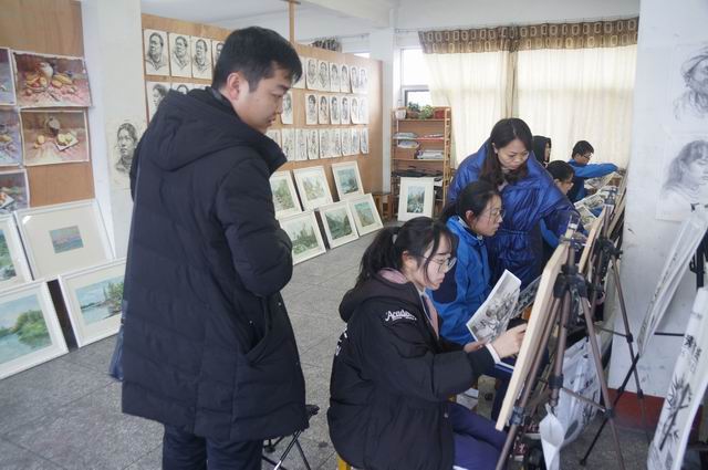 在盛传云副校长等人陪同下,扬州大学“国培计划”研修班学员们先后参观了江苏省高中美术教育课程基地—美术绘画室、学校音乐教学中心、学校操场及篮球场等教育教学设施,实地观摩了学校高二美术生绘画,高三音乐生训练声乐,学校排球队队员刻苦训练等场景。在此期间,他们还不断向艺教处副主任吴文娟、团委书记圣晶晶及冯俊林副主任等了解学校美术教育、音乐教育、体育教育等情况。他们对公道中学体艺教育有了初步了解,同时,对学校艺术教育特色及成果表示赞赏。