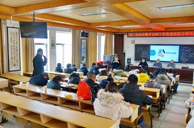 市名师工作总室领衔教师常国庆作了“新授课培养学生核心素养的策略与路径”的专题讲座。区名师工作室领衔教师许兴震副局长作了“综合法求空间角与距离的教学要求及教学对策的研究” 的专题讲座。两位专家的讲座各有千秋,他们都为新授课中培养学生数学核心素养指明了策略与路径,特别是对高中数学必修2立体几何中“空间角与距离”的教学指明了方向。