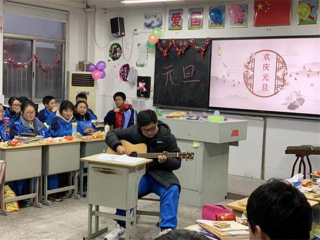 当天下午两节课下,公道中学九龙苑内顿时成了一片欢乐的海洋。在各班级的联欢会上,同学们尽情展示了自己的特长与才情,青春与活力,深情的歌唱、热烈的舞蹈、诙谐的相声、幽默的小品和脱口秀表演,赢得一阵阵掌声与欢笑;“背靠背”、“幸运抽”、“踩气球”等自编自导的游戏,给大家带来了无穷的欢乐;公中的老师们一改往常的严肃,受邀参与了班级联欢会,即兴表演了一些节目,共同欢度元旦佳节。最后,各班主任纷纷发表了2020新年致辞,表达了对2019年的不舍,对2020新年的期盼,寄托着对同学们在新年中的美好愿望。