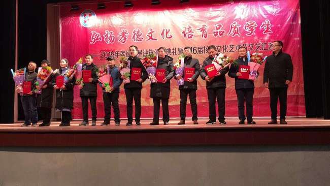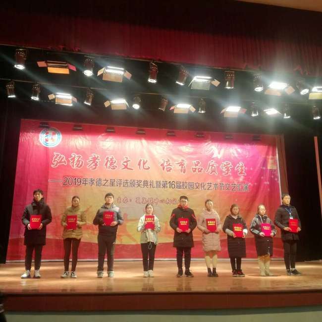 中心初中开展了2019年孝德之星颁奖典礼暨校园文化艺术节文艺汇演。活动中,对10名学生授予“孝德之星”称号,并对3个孝德先进班集体进行表彰,同时表彰了10名最美教职工,师生同台竞艺,舞蹈、小品、歌曲、太极拳等精彩的节目,赢得一阵又一阵的掌声。