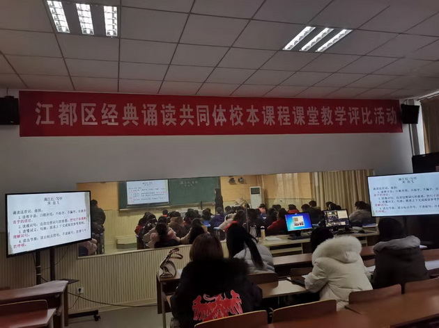 日下午,江都区经典诵读共同体在龙川小学举行经典诵读校本课程课堂教学竞赛活动。