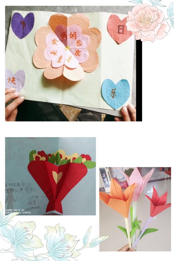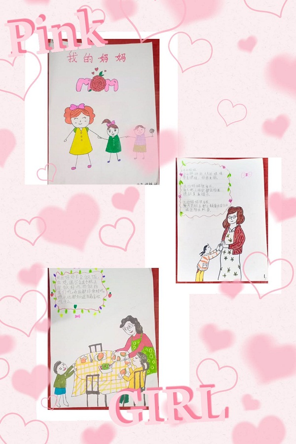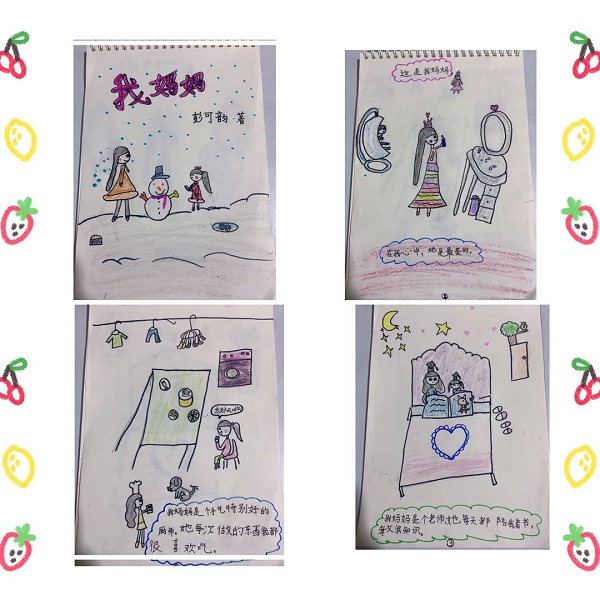 同学们上网搜索了解"三八"妇女节的由来,手工制作感恩贺卡,帮妈妈洗一次脚,为奶奶捶一回背,帮家人做一件力所能及的家务事,他们纷纷通过自己的方式表达对妈妈对家中长辈的感激之情。该校一(2)班的小朋友更是别出心裁,他们自己动手创作绘本故事《我的妈妈》,作为献给妈妈“三八”节的礼物。