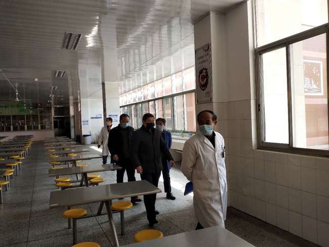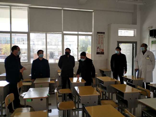 在公道中学李兆兵副校长等人陪同下,毛重祥院长一行4人首先从学校南大门进入校园。在学校总务处卜雪林主任带领下现场模拟了师生分流入校,然后由分流通道进入到师生入校测温区,测量体温以后方可以进入到九龙苑教室。在高一(13)班教室内,盛传云副校长介绍了按照学校疫情防控实施方案要求,学生的就坐、桌椅摆放、消毒及应急处理等。吴天荣副院长当场对学校教室及公共区域(卫生间、洗手池、饮水机等)的消毒措施及注意事项等提出了指导性意见。