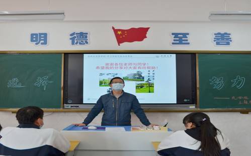 第一项议程由上海同济大学吴宝强硕士交流自己的学习经验。吴硕士首先向九年级毕业生介绍了自己和自己的大学——同济大学,通过一系列的图片和视频介绍,激发了学生们对大学的向往之情。其次吴硕士跟学弟学妹分享了自己从初中到大学,一路走来的奋斗历程和心路历程。接下来吴硕士分享了自己多年来的学习经验,为九年级毕业生指明了复习的方法。最后,吴硕士寄语学弟学妹:做好选择,明确目标,努力前行,考上理想中的高中和大学。
