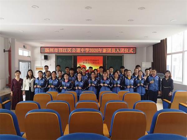 为加强学校共青团队伍建设,增强青少年学生进取意识,经学生自愿申请、班主任推荐、班级团支部表决、年级团总支把关,学校团委考核,报共青团邗江区委员会批复,特批准公道中学葛佳静等30名同学加入中国共产主义青年团。前期,这30名入团积极分子通过团课学习,社会实践活动,团课结业考试等环节,最终通过考核。今天,他们在庄严的团旗下宣誓,终于成为一名光荣的中国共产主义青年团团员。