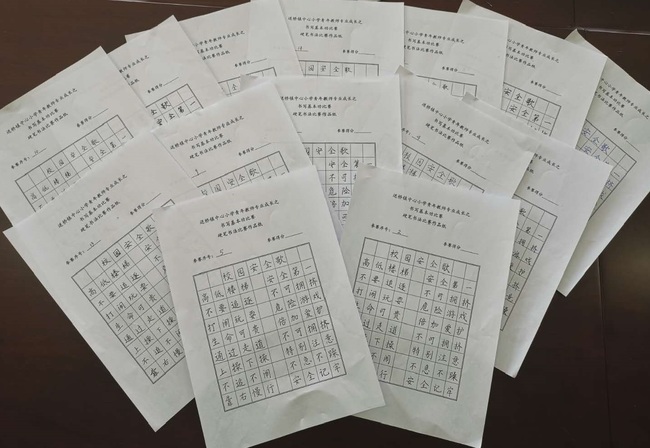 比赛要求参赛教师在规定时间内书写指定的内容。硬笔以“校园安全”为题材,粉笔字以“校园文明”为题材,软笔以“校园法治”为题材。比赛现场,教师们都拿出看家本领,个个全神贯注,谋划布局。比赛结束,一幅幅笔画匀称、章法自然的作品呈现在我们的面前,或字迹娟秀,或苍遒有力,赢得了大家由衷地赞叹。老师们彼此鉴赏、交流体会,既陶冶了情操,又享受了乐趣。