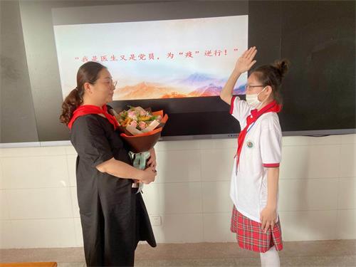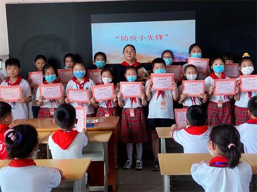 队会上还表彰了一批“防疫小先锋”。龚婵媛阿姨为这些优秀队员颁奖,最后大家和龚阿姨合影留念。队员们纷纷表示今后一定要弘扬抗疫精神,像龚婵媛阿姨一样,做一个对社会有用的人。