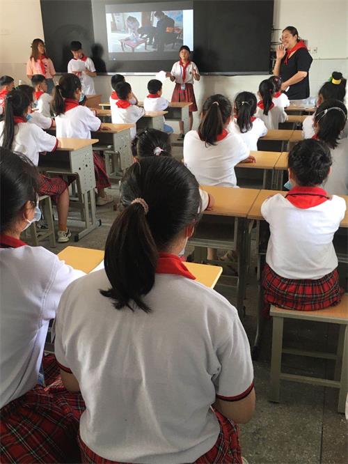 大家聆听了龚婵媛阿姨的事迹报告,感人肺腑的细节,朴实生动的语言,让队员们近距离感受到那段不平凡的时光。龚阿姨不惧艰险,舍小家、为大家的家国情怀和奉献精神,赢得了队员们的阵阵掌声。 少先队员代表为龚阿姨献上鲜花,表达他们的敬意。