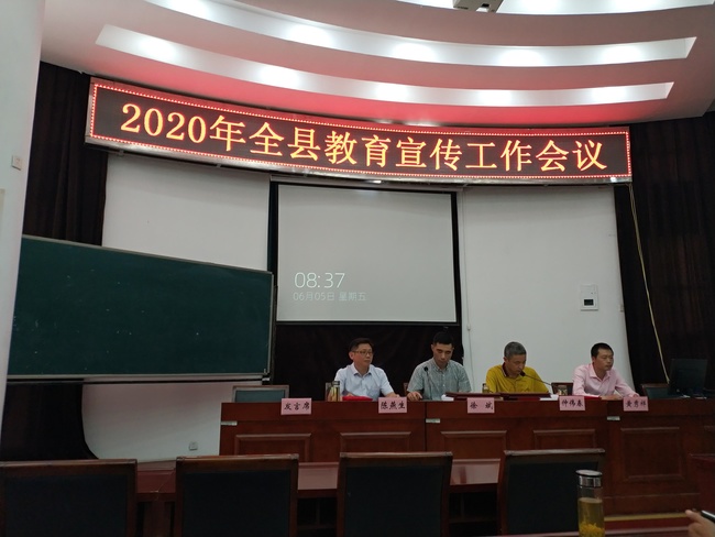为贯彻党的十九大和十九届二中、三中、四中全会精神,总结2019年教育宣传工作,研究部署2020年教育宣传工作思路及举措,进一步提升宝应县教育系统宣传水平,及时向社会报道宝应教育开展的活动及取得的成绩,6月5日上午,县教育局在实验小学圆厅召开全县2020年宣传工作会议,各镇中心初中、县属各学校(园)派分管负责人、通讯员及先进个人获得者参加了会议,县教育局领导徐斌、仲伟春、陈燕生、黄秀祥出席了会议。