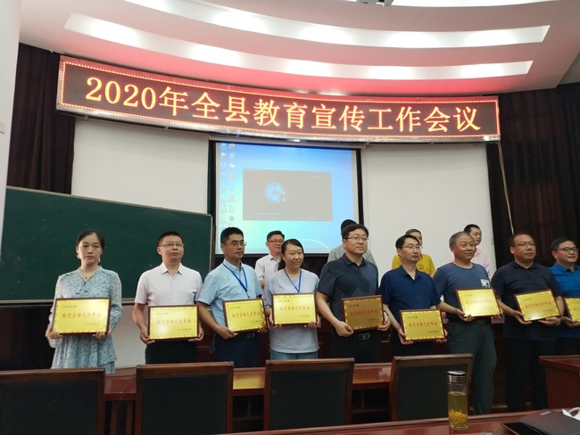 会议首先由仲伟春副局长宣读了全县文明校园、县宣传先进集体和先进个人名单,在欢快的音乐声中为12家先进集体和20名 先进个人颁奖,现场响起了热烈的掌声。