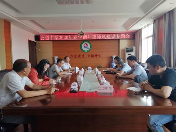 为进一步加强学校师德师风建设工作,提升师德修养,2020年6月9日下午,按照近期学校工作部署,公道中学召开了2020年春学期师德师风建设专题会议。会议由盛传云副校长主持,全体相关部门的教职工参加了本次会议。