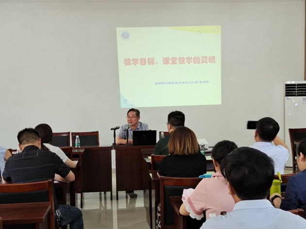 活动中,龙川小学柴慧老师执教了一节语文研讨课《荷叶圆圆》。柴老师清晰的教学思路、简约的教学环节、灵动的课堂驾驭,赢得了听课老师的一致好评。接着,扬州市特级教师,龙川小学校长潘湘云做了题为《教学目标,课堂教学的灵魂》的专题讲座。潘校长以柴慧老师的课为例,将如何制定目标,以及达成目标的方法娓娓道来,让在场的老师受益匪浅。 |