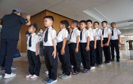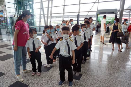 进入研学基地,小朋友们换上了制服,顿时一个个小空姐、小空少出现在眼前
