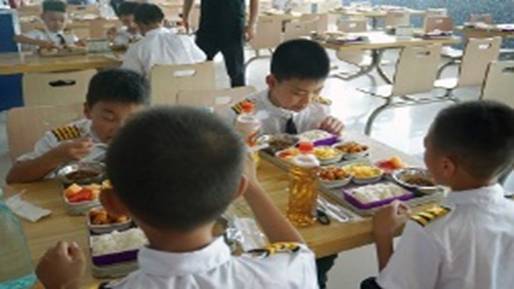 中午,大家在地面餐厅品尝了航空餐,精致的摆盘,丰富的菜品让孩子们体验到了万米高空中用餐的感受。