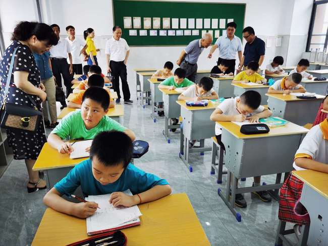 在李长清助理和佘中林校长的陪同下,李福康主任一行对高新区小学书法、绘画、趣味数学、经典诵读、象棋、跆拳道、足球等辅导班进行了实地调研,仔细观看学生作品,与学生进行交流,对学生进行针对性指导。