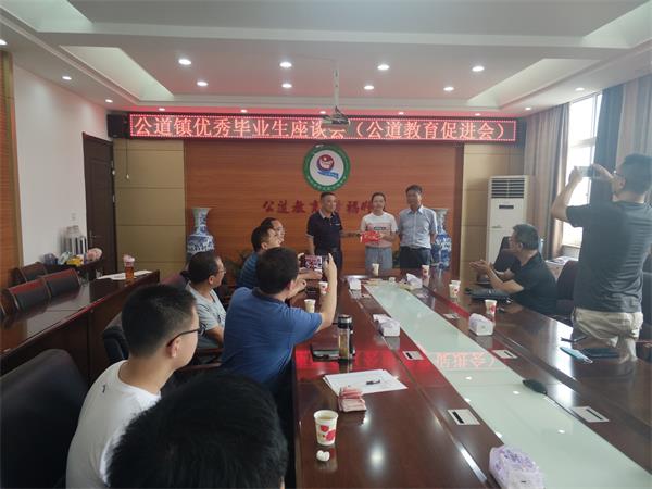 8月7日上午,公道镇2020届优秀毕业生(公道中学、公道初级中学)座谈会在公道中学宜思楼四楼会议室举行。公道镇党委委员、社会事业局倪学明局长、文卫科徐勇科长,公道镇教育促进会主要负责人,公道中学、公道初级中学主要领导,优秀毕业生代表及家长参加了本次座谈会。