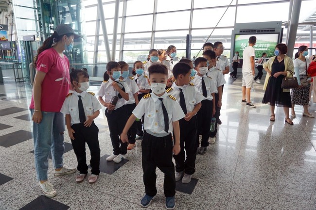 进入研学基地,小朋友们换上了制服,顿时一个个小空姐、小空少出现在眼前。