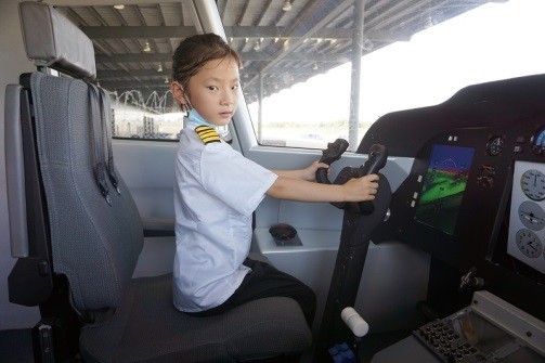 下午,在专业老师的指导下,小朋友们走进模拟机舱,过了一把驾驶飞机的瘾。